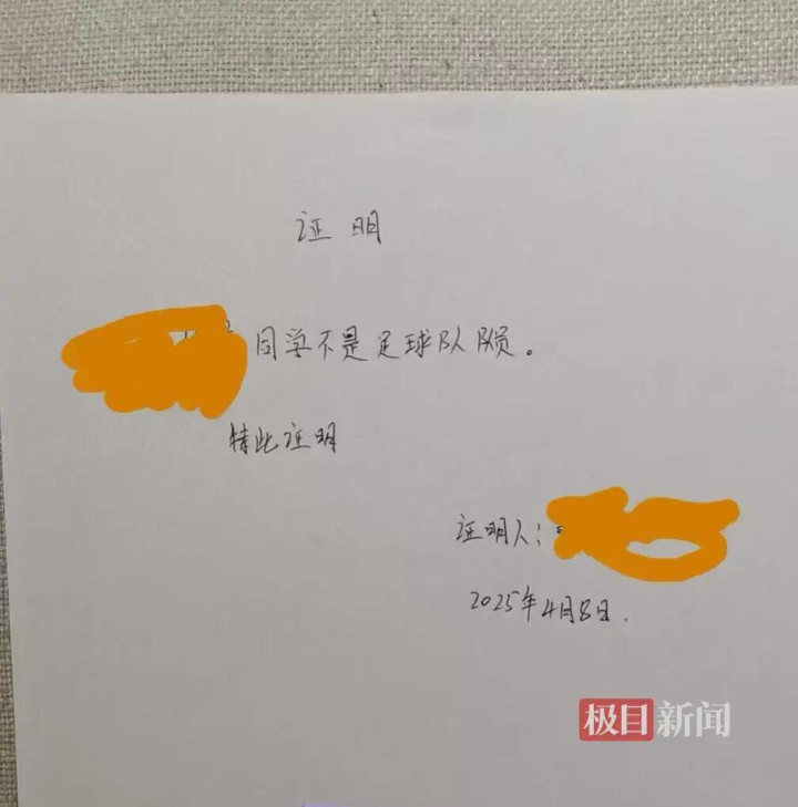 记者获悉,宋女士得知张同学系该校足球队队员,并多次联系学校要求查看监控录像,但被学校告知因监控设备维修维护,视频数据被格式化处理无法查看为由拒绝,校方相关人员还开具了证明。另外,该校工作人员还开具证明称,张同学不是学校足球队队员。记者注意到,两份证明均为手写,学校没有盖章。