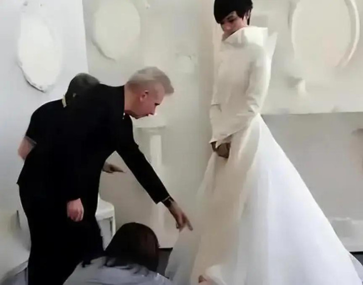 举办方考虑到她穿高跟鞋不方便,就安排安保人员进行搀扶,殊不知好心办了坏事。
