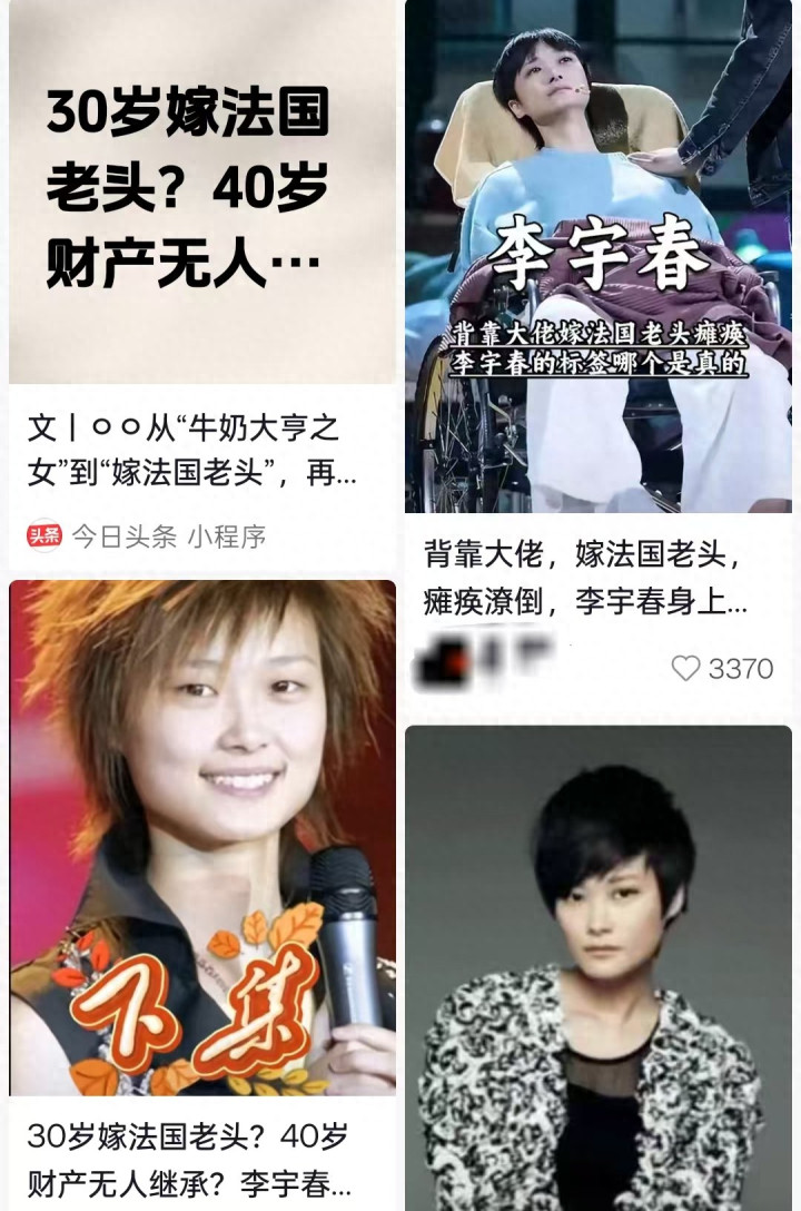 今年6月网络上一则“41岁李宇春嫁给外国老头”的离谱旧闻更是令人笑掉大牙。
